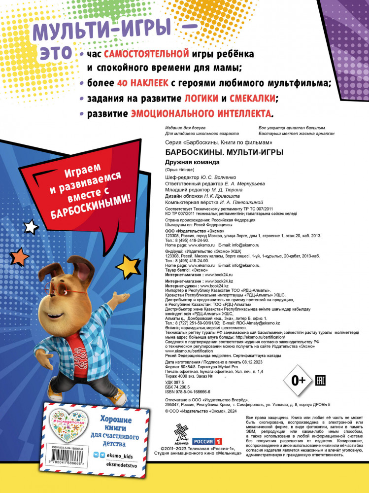 💳 Оплатить за товар можно при получении 🇰🇿 Есть бесплатная доставка по Казахстану от 1 дня 🎁 Копите бонусы с каждой покупки Серия: Барбоскины. Книги по фильмам Хочешь снова встретиться с обаятельными и веселыми Барбоскиными? Тогда скорее открывай эту книгу и начинай играть! Здесь тебя ждут прикольные раскраски, запутанные лабиринты, увлекательные задания, интересные кроссворды и море наклеек. И, конечно же, твои любимые персонажи! От такой книги просто невозможно оторваться! Сделай все занимательные задания, весело проведи время и узнай, насколько ты находчивый и смекалистый. |