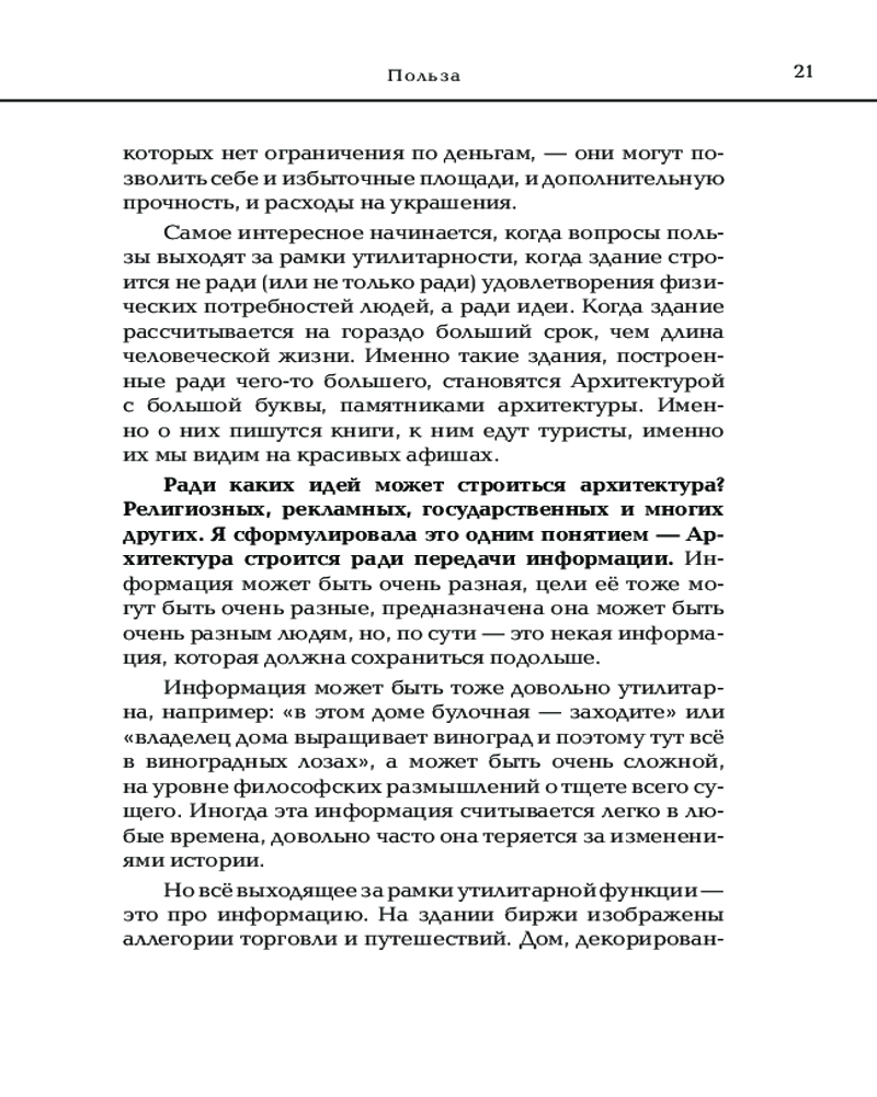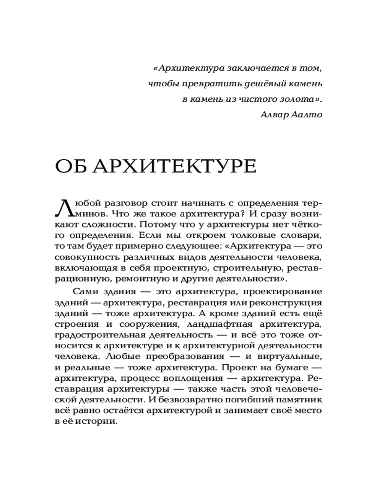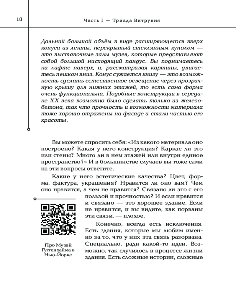 Все эти знания помогут вам научиться «читать» фасады зданий, разобраться в стилях и направлениях, увидеть главные шедевры мировой архитектуры от Версальского дворца до музея Гуггенхайма. |