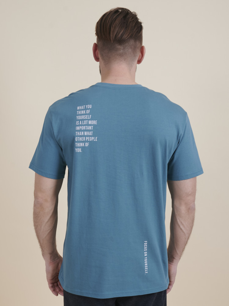 Мужская футболка оверсайз с принтом. Футболка свободного кроя подарит вам комфорт и свободу движения. Изделие такого силуэта скрывает недостатки фигуры и подчёркивает достоинства. Майка с комфортными свободными рукавами идеальна для повседневной носки. Модель неприхотлива в уходе. Трикотажная футболка по спинке украшена стильными лаконичными принтами, оригинально расположенными не по центру. Надписи переводятся: «То, что ты думаешь о себе, гораздо важнее того, что думают о тебе другие», «Сосредоточься на себе». Принты качественные и стойкие — без проблем переносят многочисленные стирки. В составе ткани 100% хлопка — футболка мягкая, приятная на ощупь и позволяет коже дышать. Майка идеальна для мужчин, молодых парней, подростков. Базовая футболка оверсайз универсальна, отлично подходит для работы, учёбы, спорта, прогулок, отдыха, а также для дома и сна. Легко сочетается с различными брюками и шортами. Её можно носить летом, зимой и в демисезон (осенью и весной). Футболка с принтом оверсайз — это прекрасный подарок брату, мужу или папе на любой праздник. Выбирайте нужный размер по таблице размеров на фото. Цвет товара на экране вашего устройства может отличаться от цвета изделия вживую.