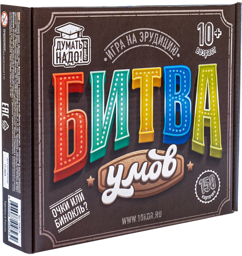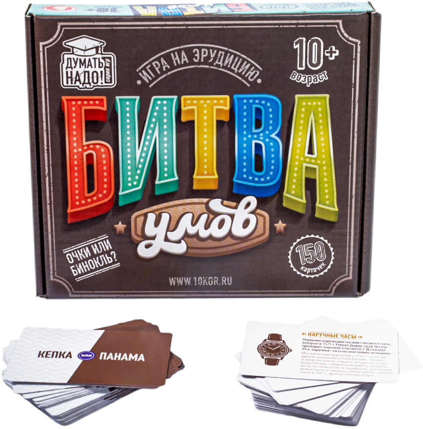 В данный момент этот товар отсутствует в продаже. Возможно, у нас найдется аналогичный или похожий товар здесь. Хотите проверить свою эрудицию, узнать что-то новое и хорошо провести время? Тогда Настольная игра на эрудицию «Битва Умов» — то, что нужно! Автобус или поезд — выбирай предмет, который появилось раньше, и побеждай! В игре могу принимать участие от 2 и более игроков. Настольная игра на эрудицию «Битва Умов» развивает память, смекалку, расширяет кругозор.