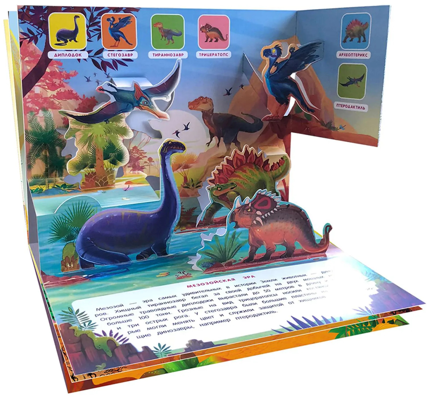 Динозавры. Энциклопедия-панорамка 3DВ данный момент этот товар отсутствует в продаже. Возможно, у нас найдется аналогичный или похожий товар здесь. Яркая энциклопедия «Динозавры» в формате книжки-панорамки с удивительными объемными иллюстрациями. Подвижные детали на разворотах книги сделают изучение еще более захватывающим. 3D развороты создают ощущение дополненной реальности. Наличие объемных и открывающихся элементов развивает мелкую моторику и пространственное мышление ребенка. Размер обложки: 26×20 см, 5 объемных разворотов. Порадуйте своего ребенка увлекательной энциклопедией-панорамкой с яркими, объемными иллюстрациями! |