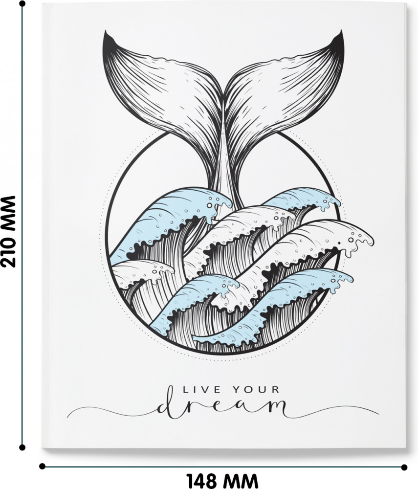 Блокнот позитивного настроения «Whale Journal»-20% +64 глянцевая обложка плотные страницы иллюстрации китов разнообразные развороты