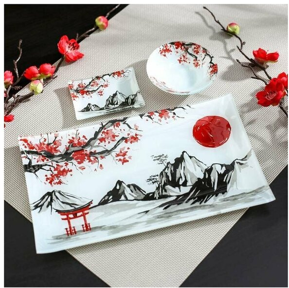 ИнтерPresent Набор для суши и роллов «Рассвет в горах»В данный момент этот товар отсутствует в продаже. Возможно, у нас найдется аналогичный или похожий товар здесь. Набор для суши Доляна «Рассвет в горах» изготовлен из качественного стекла. Набор включает в себя подставку для суши и два соусника. Такая посуда прекрасно дополнит сервировку в классическом или азиатском стиле и станет отличным подарком близкому человеку. |