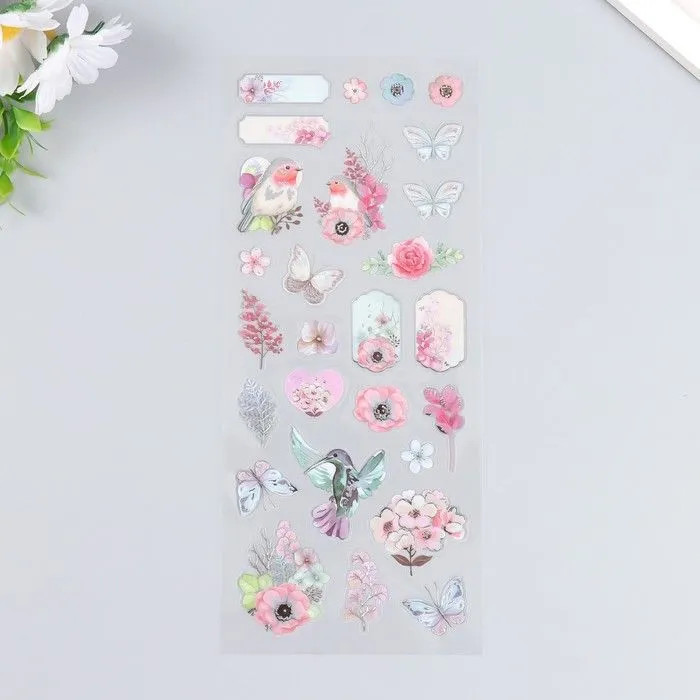 ИнтерPresent Набор наклеек «Птицы и цветы»+4 качество красивые