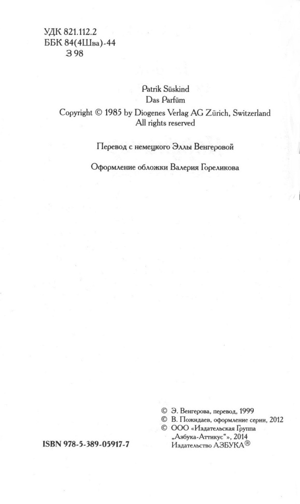 Не пожалела, что заказала эту книгу, очень понравилось! Гренуй уникален по своей природе. Как по мне, его нельзя любить или ненавидеть, считать его поступки хорошими или ужасными (так же как он в детстве не разделял запахи на приятные и неприятные). Фильм, кстати, сняли на удивление неплохой, хотя, как обычно, некоторые несоответствия имеются.