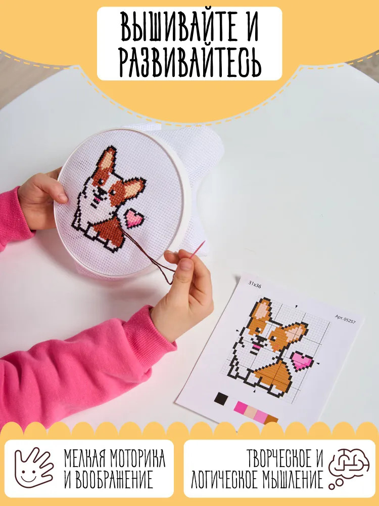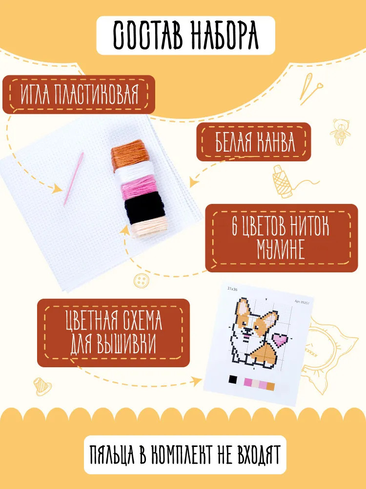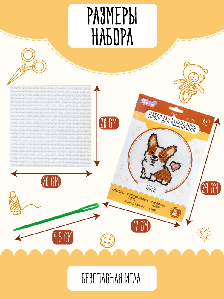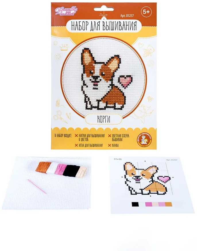 💳 Оплатить за товар можно при получении 🇰🇿 Есть бесплатная доставка по Казахстану от 1 дня 🎁 Копите бонусы с каждой покупки Набор для вышивания «Корги» создан специально для поклонников породы и любителей животных! Процесс вышивания развивает мелкую моторику, воображение, творческое и логическое мышление. А готовая вышивка станет памятным подарком для друзей и родных. Размер готовой вышивки 10×10 см. |