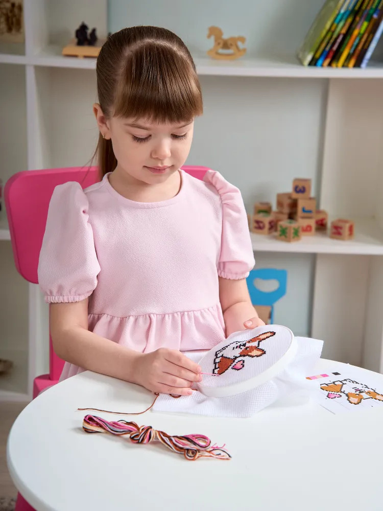дочка с удовольствием вышивает