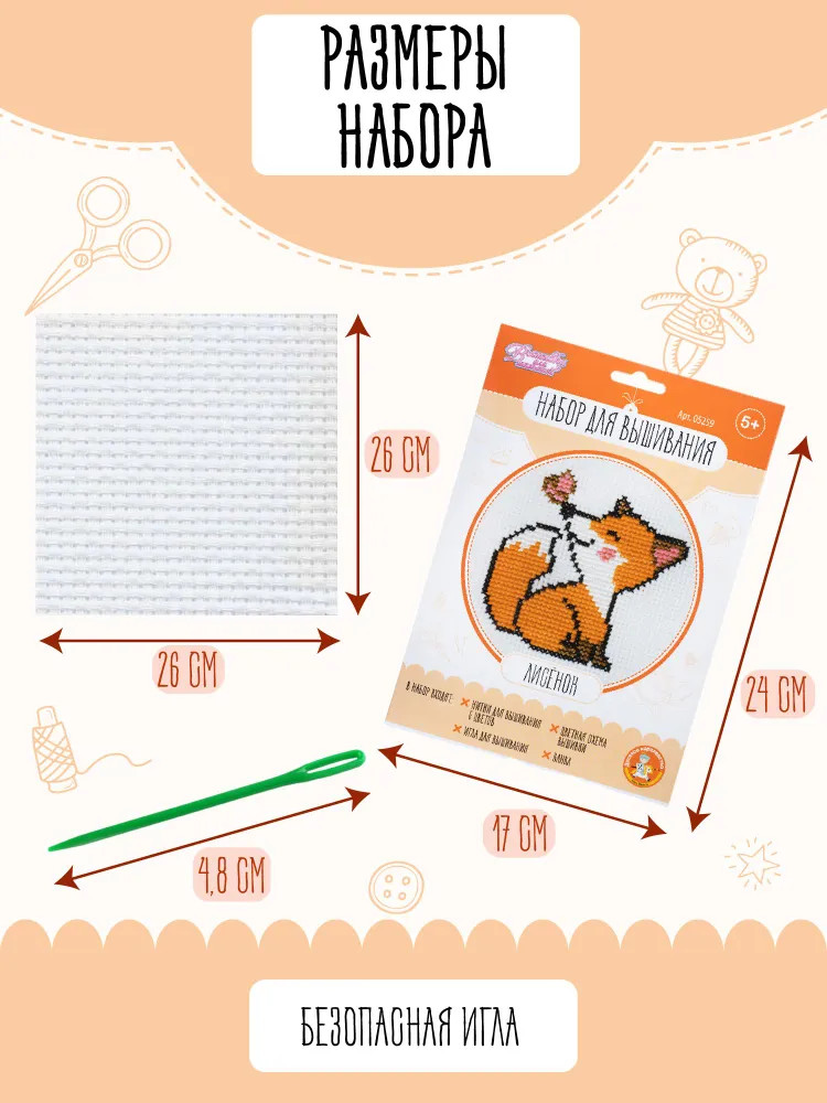 С набором для вышивания «Лисёнок» вы создадите памятный подарок для друзей и близких. Вышитое изображение милого персонажа не оставит равнодушным никого! Процесс вышивания развивает мелкую моторику, воображение, творческое и логическое мышление. Размер готовой вышивки 10×10 см. |