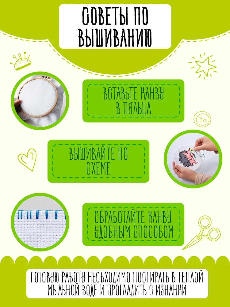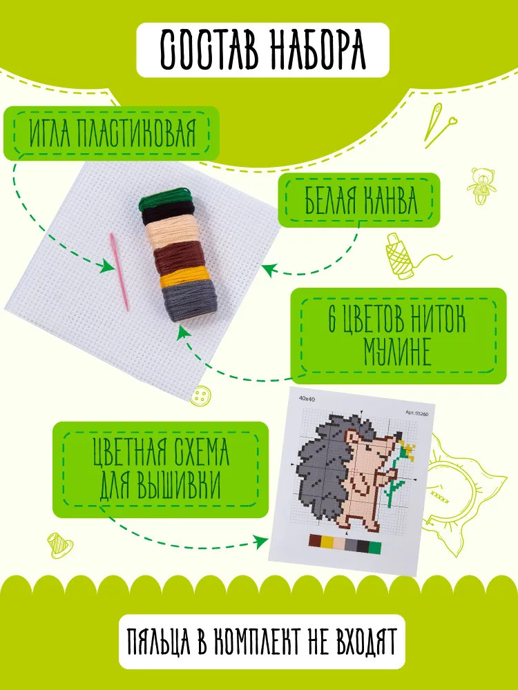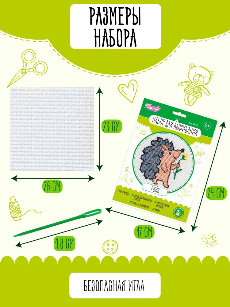 💳 Оплатить за товар можно при получении 🇰🇿 Есть бесплатная доставка по Казахстану от 1 дня 🎁 Копите бонусы с каждой покупки С набором для вышивания «Ёжик» ребенок своими руками сделает замечательный подарок для друзей и близких. Вышитое изображение милого персонажа не оставит равнодушным никого! Процесс вышивания развивает мелкую моторику, воображение, творческое и логическое мышление. |