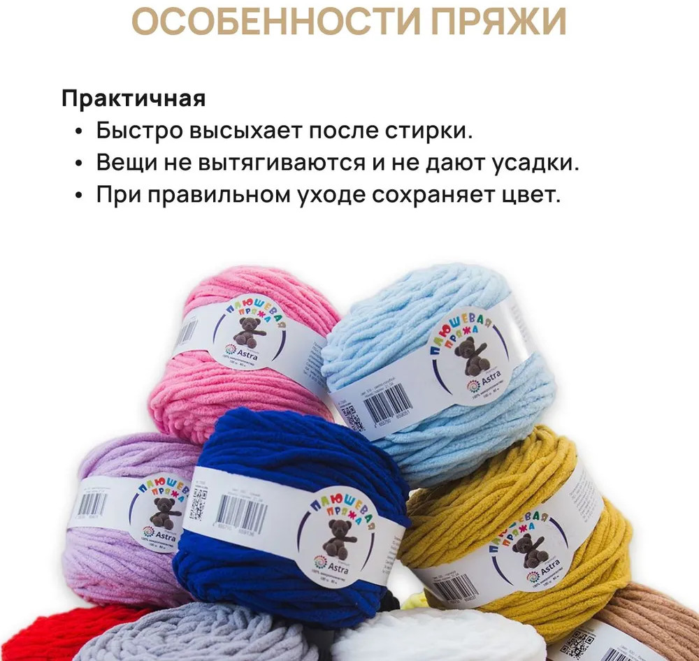 Пряжа отличная.Не синтетика ,не распускается при вязание,как обычная плюшевая Цвета ещё лучше чем на фото