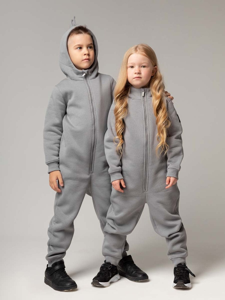 Комбинезон для детей. Детали: несъемный капюшон, застежка — молния, манжеты, защитная планка на молнии. Материал: футер трёхнитка с начёсом.