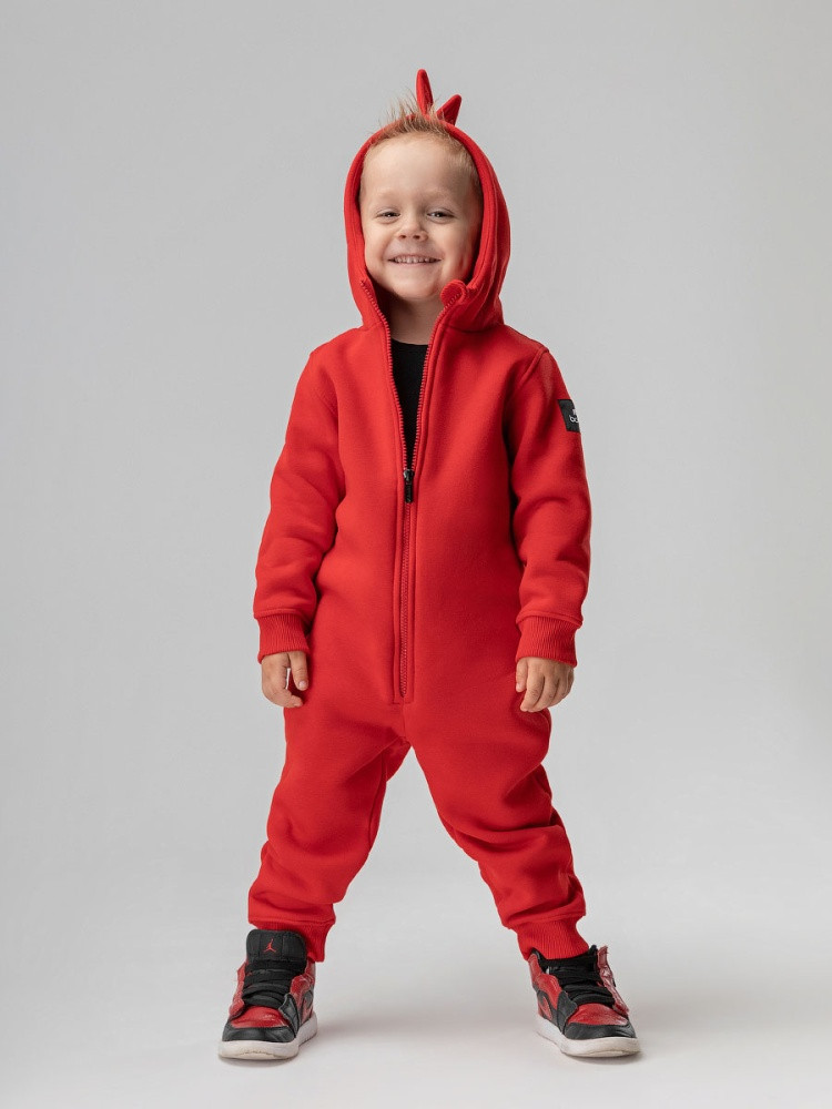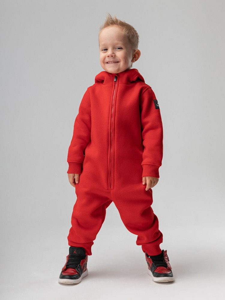 Комбинезон для детей. Детали: несъемный капюшон, застежка — молния, манжеты, защитная планка на молнии. Материал: футер трёхнитка с начёсом.