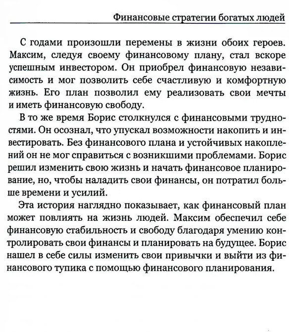 Финансовые стратегии богатых людейВ данный момент этот товар отсутствует в продаже. Возможно, у нас найдется аналогичный или похожий товар здесь. Серия: Бизнес вектор Книга содержит 50 принципов и финансовых стратегий богатых людей. Это сборник ценных уроков, основанных на опыте и успехах реальных людей, с которыми автор сталкивался в своей жизни, чьи активы составляют сумму от одного миллиона долларов США и более. В первую очередь книга подтверждает, что финансовый успех требует определенного мышления и долгосрочного планирования. Богатые люди четко определяют свои цели и разрабатывают стратегии, чтобы их достичь. Они не просто стремятся к краткосрочным успехам, а смотрят вперед и предпринимают действия, которые приведут к непрерывному росту и процветанию. Соблюдение этих принципов позволит вам достичь финансовой свободы. |
