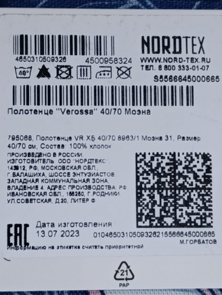 К самому полотенцу у меня претензий нет: что на этикетке изделия, то и в действительности. Состав и дизайн соответствует.