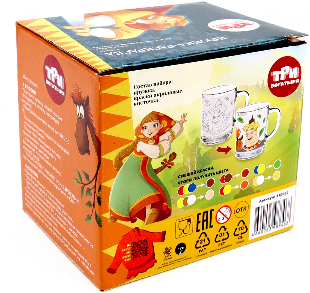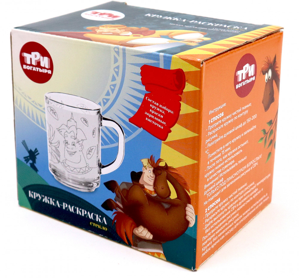 💳 Оплатить за товар можно при получении 🇰🇿 Есть бесплатная доставка по Казахстану от 1 дня 🎁 Копите бонусы с каждой покупки Серия: Три богатыря Кружка 230 мл, в наборе с красками и кисточкой, «Три Богатыря», стекло — отличный подарок ребенку!Не подвергать длительному воздействию прямых солнечных лучей, не использовать в СВЧ, духовом шкафу, на открытом огне, не замораживать в морозильной камере, мыть перед использованием, ручная мойка без использования абразивных веществ. |