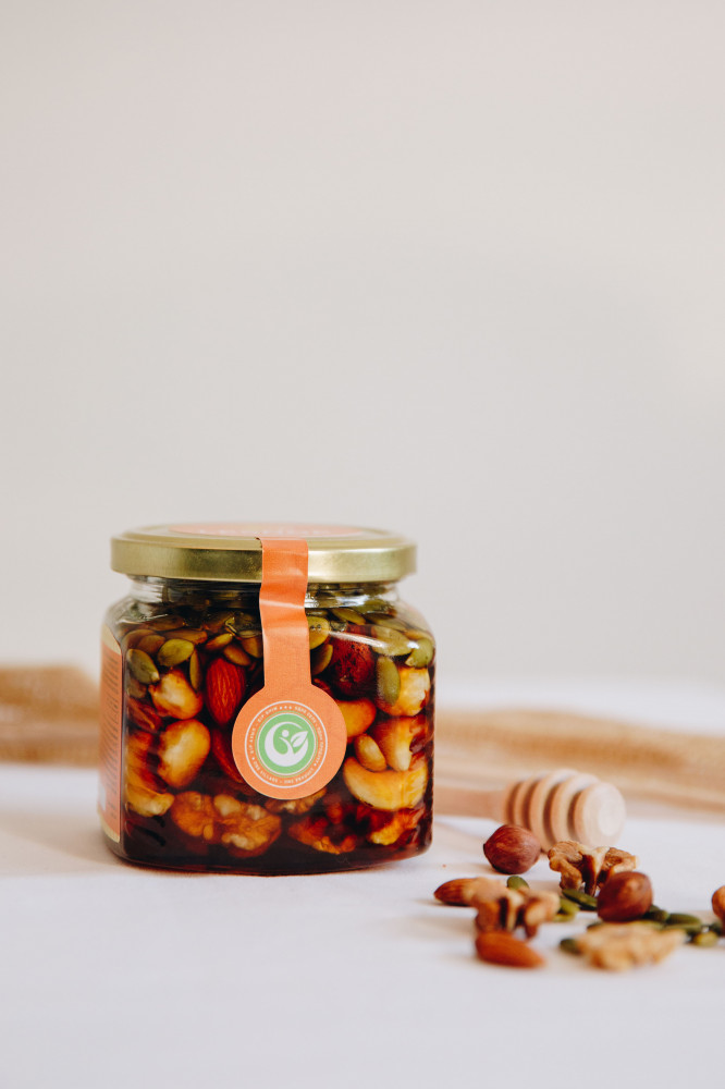 Lesnoe Мёд натуральный с добавлением ореховВ данный момент этот товар отсутствует в продаже. Возможно, у нас найдется аналогичный или похожий товар здесь. Орехи в меду — полезный десерт для тех, кто практикует ЗОЖ и правильное питание. Натуральный мед с ассорти орехов: грецкий орех, кешью, миндаль, фундук, тыквенные семечки, кедровый орех — настоящий суперфуд. Мёд Лесное разнотравье с орехами положительно влияет на здоровье, стабилизирует давление, укрепляет сердце с сосудами, является природным антисептиком, укрепляет иммунную систему, помогает при простудных заболеваниях, повышает гемоглобин, способствует похудению, заряжает энергией. Орехи — прекрасный источник витаминов и минералов. |