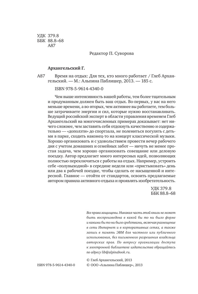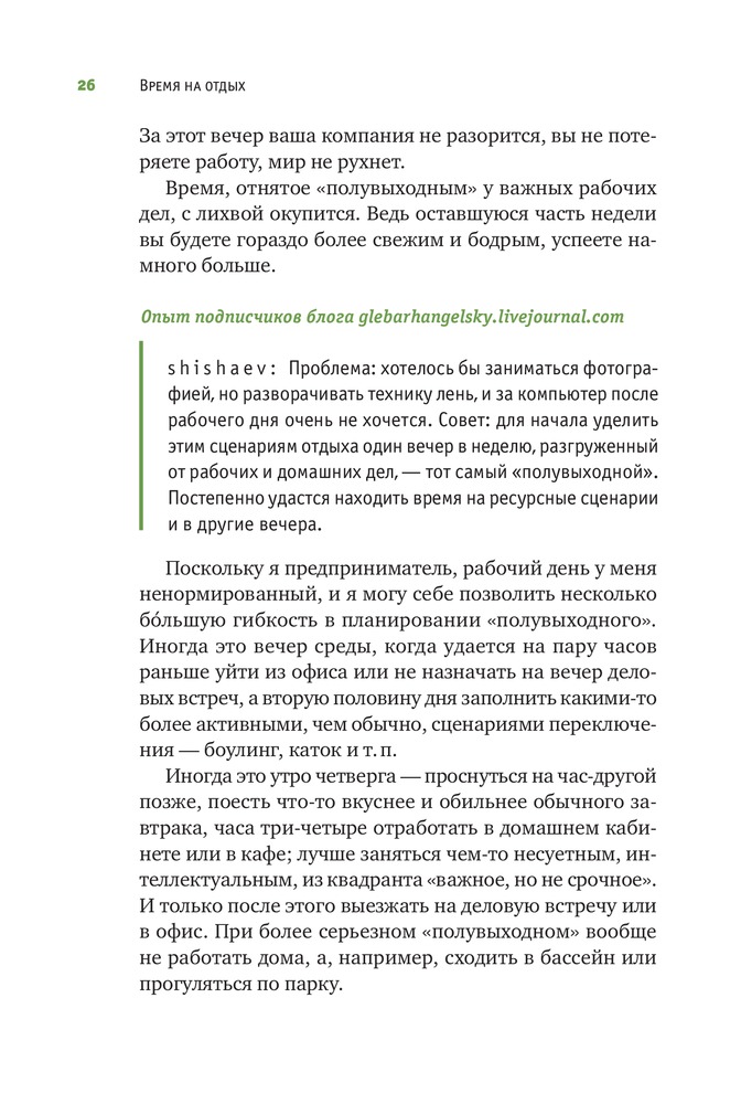 Время на отдых: Для тех, кто много работаетВ данный момент этот товар отсутствует в продаже. Возможно, у нас найдется аналогичный или похожий товар здесь. «Нет ничего проще, чем провести вечер у телевизора. Нет ничего сложнее, чем заставить себя отдохнуть качественно и содержательно». |