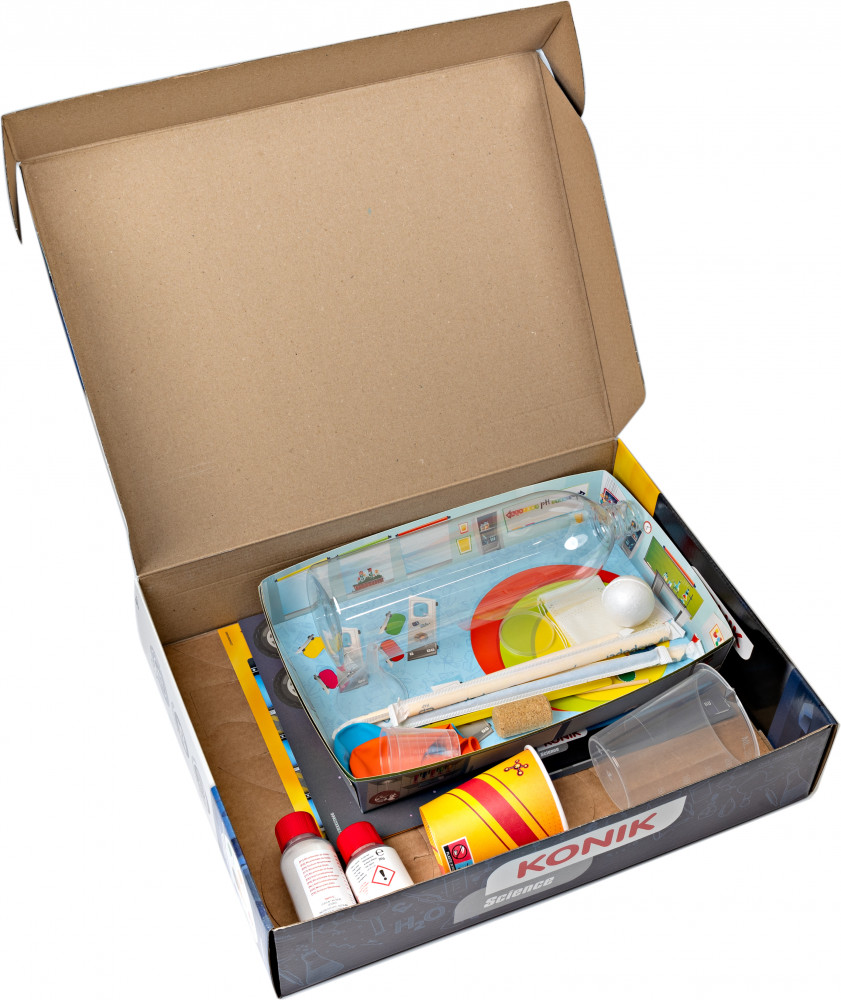 Узнайте, как разработать и спроектировать настоящий космический транспорт, как протестировать работоспособность различных прототипов космолетов, как запустить ракету на 20 метров и многое другое с набором от «Konik Science».