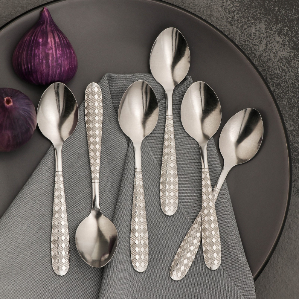 Доляна Набор ложек чайных «Ромб»В данный момент этот товар отсутствует в продаже. Возможно, у нас найдется аналогичный или похожий товар здесь. Серия: Ромб Набор десертных ложек для чая, кофе из нержавеющей стали Доляна. Ложки столовые изготовлены из высококачественной нержавеющей стали, очень прочные, они сохраняют свои оригинальные характеристики, сохраняя красоту, гигиену и долговечность материала, как серебрянные. Набор ложек можно мыть ежедневно в посудомоечной машине. Прекрасно подойдет для подарка на новоселье родным и близким. |