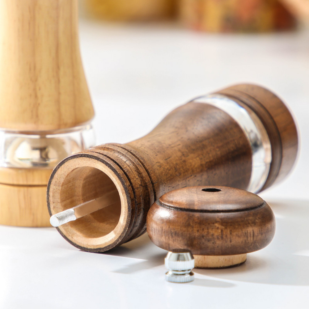 Набор мельниц для специй с прекрасным дизайном. Они имеют простой и удобный механизм для измельчения соли и перца. Размер каждой мельницы составляет 5 × 5 × 16,5 см, в наборе две штуки. Они идеально подходят для домашнего использования и добавляют аромат и вкус вашим блюдам. Они легко чистятся и имеют длительный срок службы. |