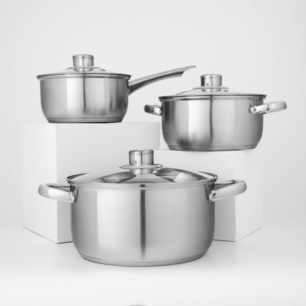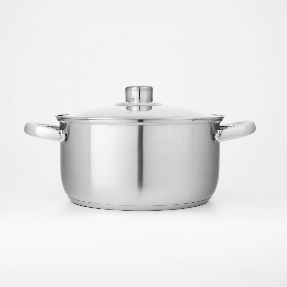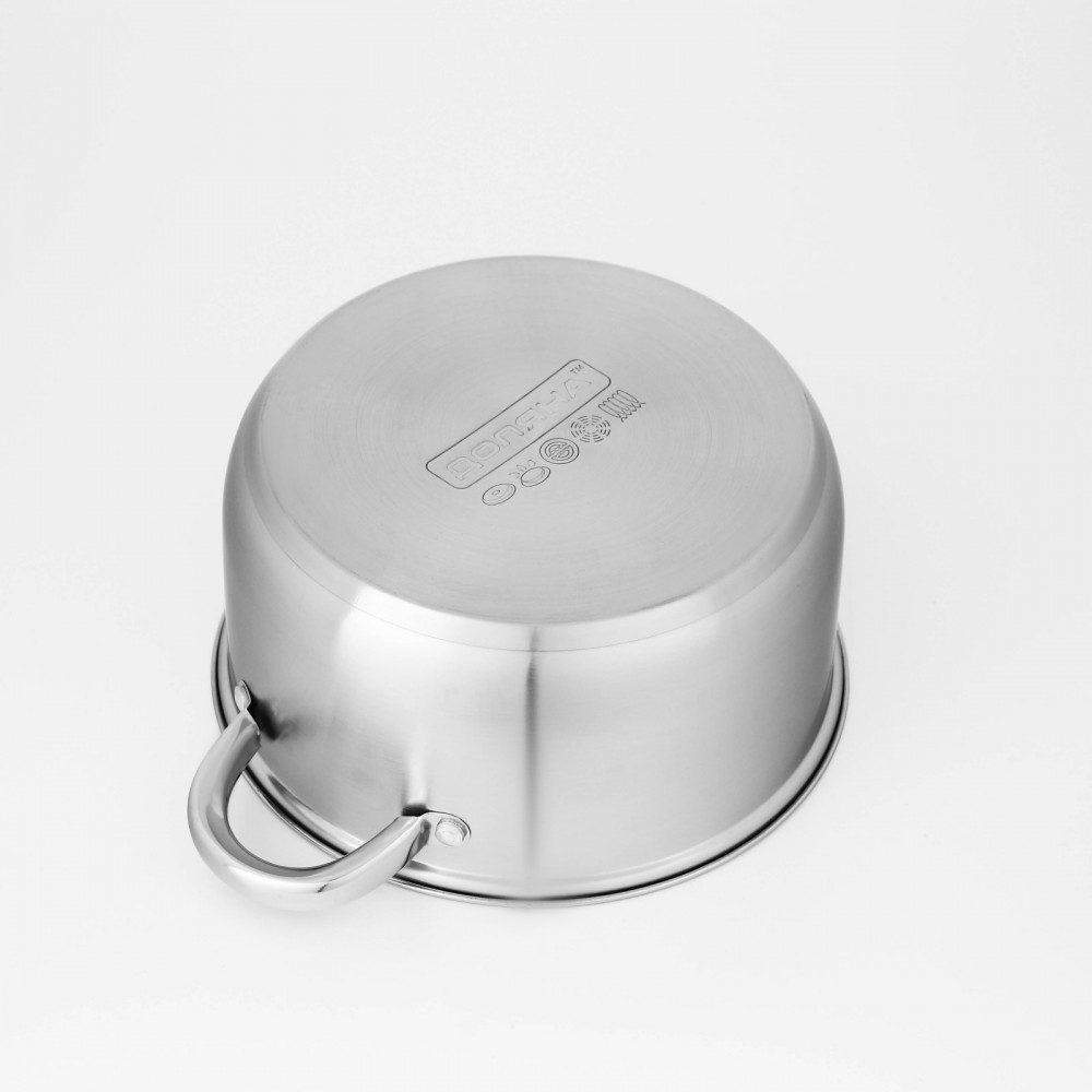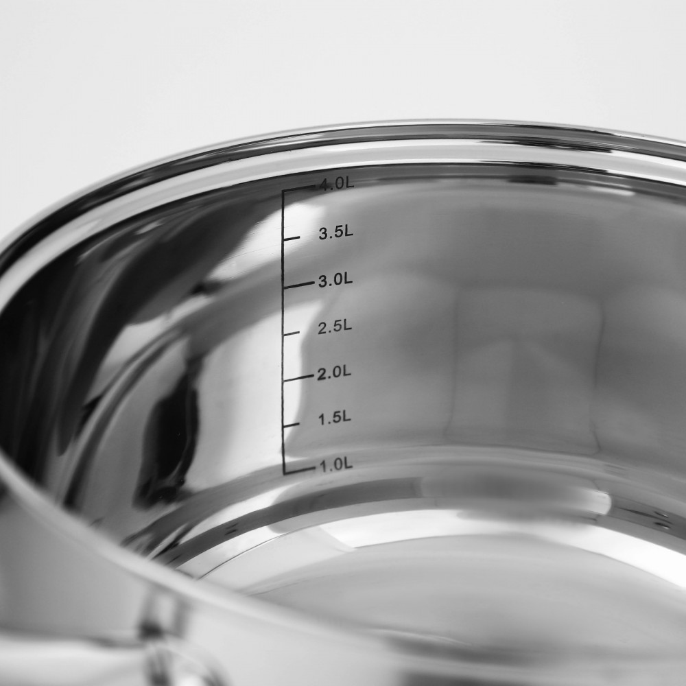 Серия: Гретте Посуда «Гретте» выполнена из нержавеющей стали марки Aisi 201. Металл быстро проводит тепло и противостоит коррозии. Благодаря капсулированному дну посуду можно использовать на индукционной плите. Толщина стали — 0,4 мм. |