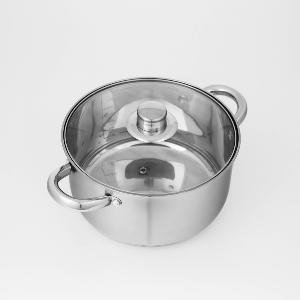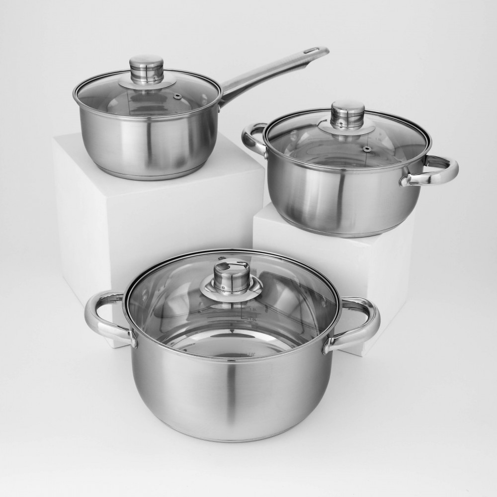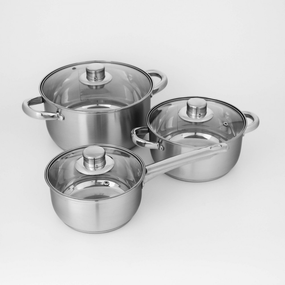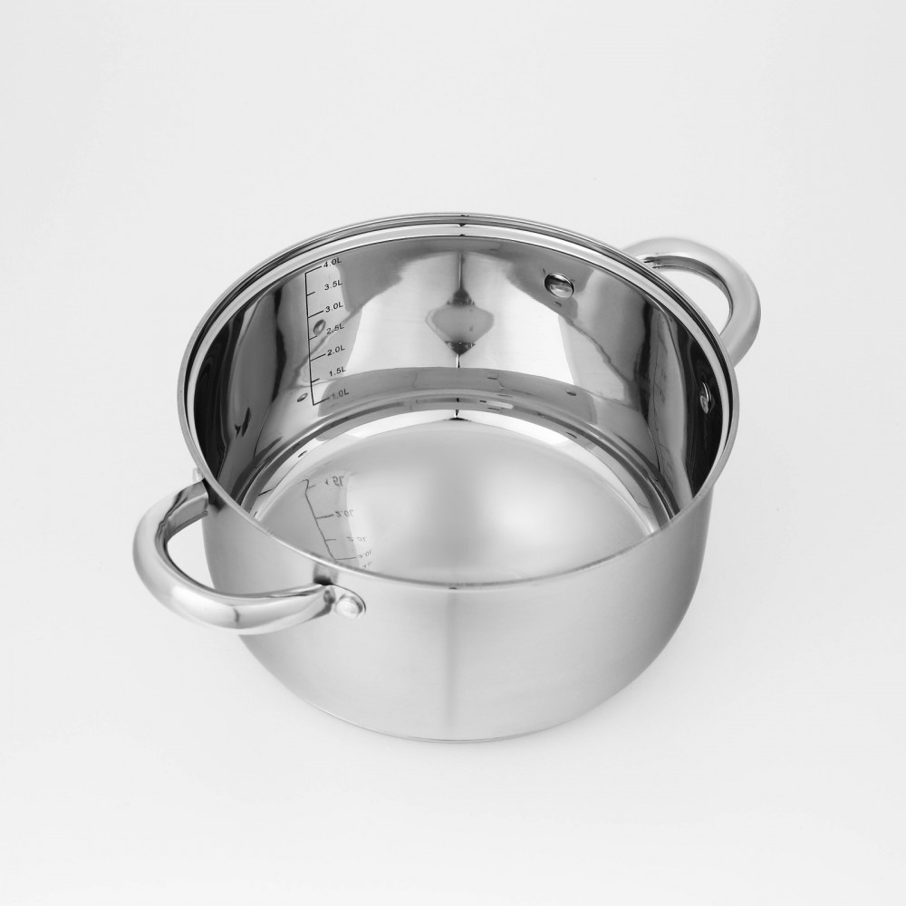 Серия: Гретте Посуда «Гретте» выполнена из нержавеющей стали марки Aisi 201. Металл быстро проводит тепло и противостоит коррозии. Благодаря капсулированному дну посуду можно использовать на индукционной плите. Толщина стали — 0,4 мм. |