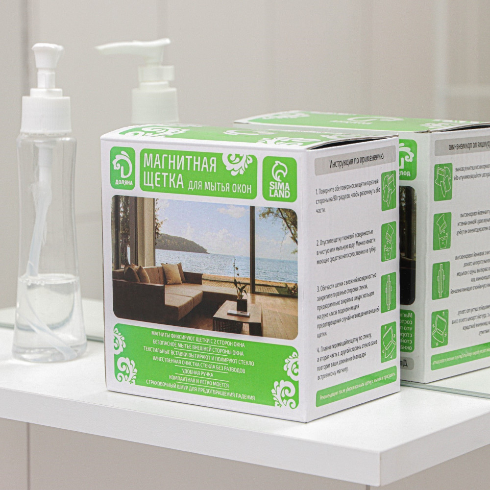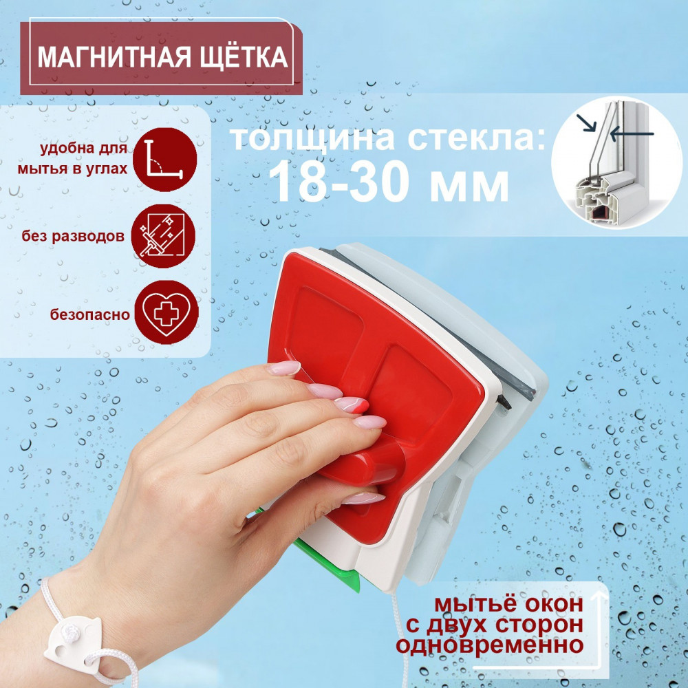 Щетка для мытья стекол поможет тщательно вымыть окна с двух сторон в квартире, доме, на балконе, террасе или на мансарде! Щетка крепится с помощью мощных магнитов с двух сторон стекла и эффективно справляется с загрязнениями любой сложности, не оставляя разводов. Щетка для окон магнитная, она состоит из двух губок, внутри каждой из которых находится магнит, закрытый сверху моющей губкой. Использование этого приспособления позволит Вам сократить время мытья в 2 раза. Ведь вы моете только одну сторону окна, а вторую автоматически очищает щетка!