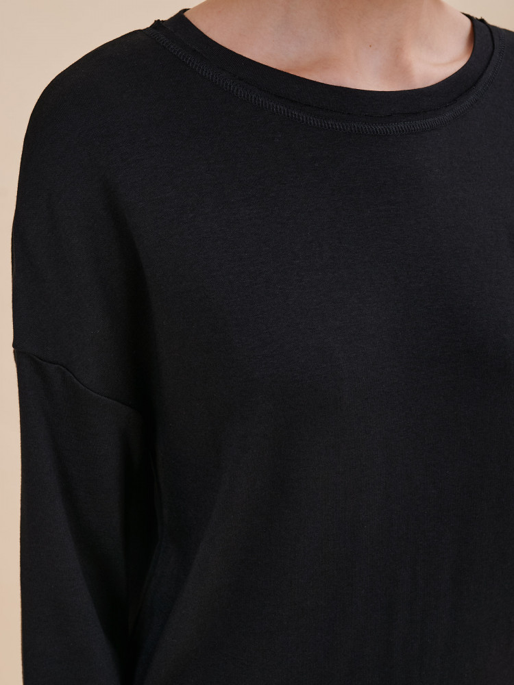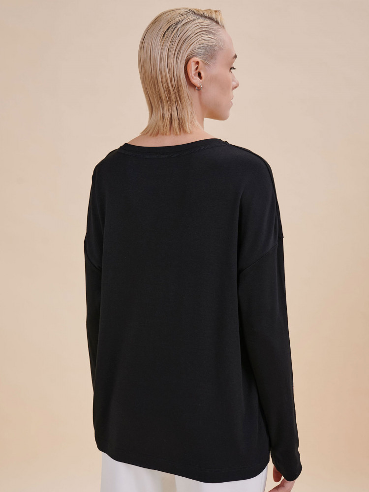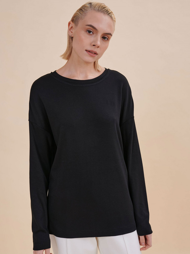 Размер свой подошёл, свободно, но не оверсайз. Комфортно и по размеру, и на ощупь. Чувствуется, со временем ткань растянется, увы. Не линяет. А на плече оказалась дырочка, заморачиваться с возвратом не буду, брала лонгслив для дома.