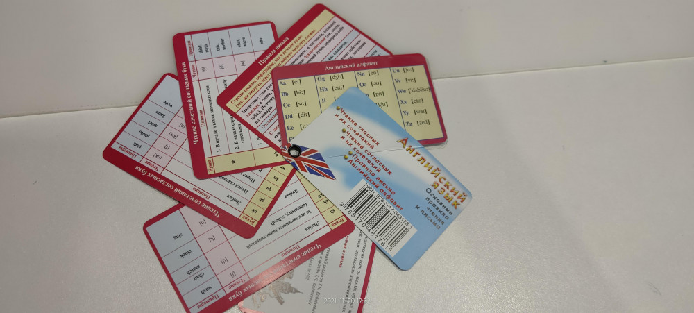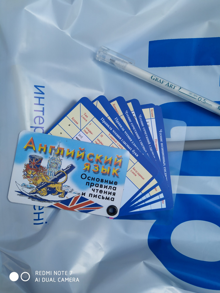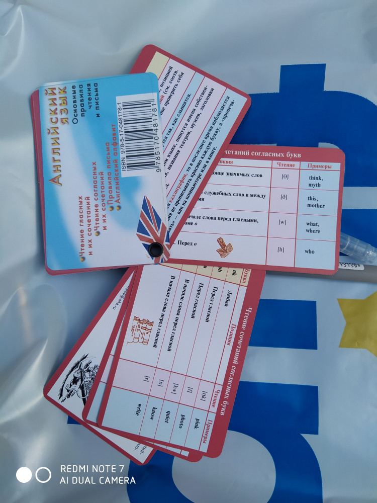 При заказе не обратила внимания на размер, почему-то думала, что А5 примерно, как тетрадка. Это оказалось неожиданностью - пособие размером с визитку! Собственно, это мини-блокнотик из визиток. Внутри, да, правила чтения звукосочетаний, в принципе, неплохая шпаргалка.
