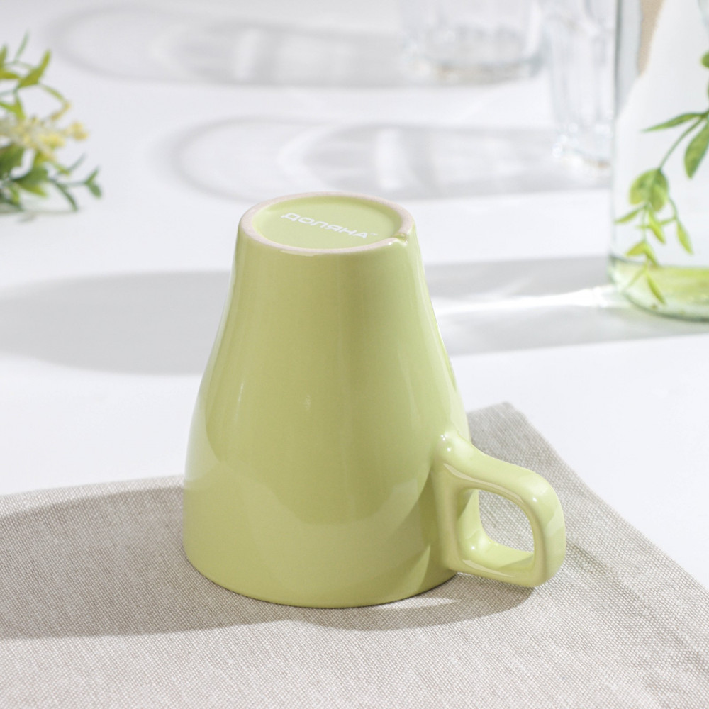 Кружка салатового оттенка, интересного дизайна. Размер оптимальный для чая и кофе: высота 9.5 см, диаметр 8 см, дно- 4.5 см. Вместимость 220 мл. Ручка эргономичная. Упаковка- на высоте: пупырка, коробка, коробка! В тандеме с блюдцами башкирского фарфора получился чудесный комплект!