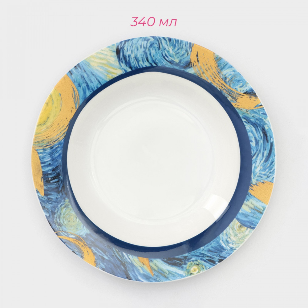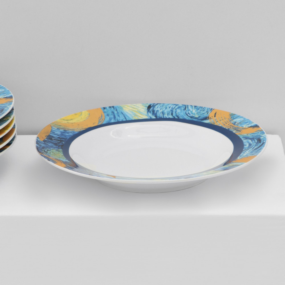 Серия: Посуда из фарфора «Звездная ночь» Серия посуды «Звездная ночь» вдохновлена полотнами Винсента Ван Гога. Она выполнена из фарфора с изображением предрассветного неба. Невероятно приятная, контрастная цветовая комбинация шедевра воодушевляет и завораживает. Такая посуда станет украшением обеденного стола, а также замечательным подарком. Вся серия изготовлена из твердого фарфора с упрочненными краями, защищенными от сколов. |