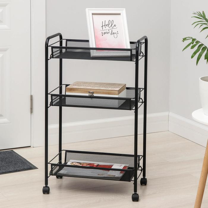 Металлическая этажерка «Ладья 2К» от российского производителя ЗМИ поможет поддерживать в доме порядок, сэкономит пространство и украсит любое помещение. Трехъярусный стеллаж с сетчатыми корзинами станет универсальным решением для грамотной организации хранения, позволит компактно разместить домашние вещи. Каркас и корзины органайзера сделаны из прочного металла, окрашены порошковой краской, которая создает на поверхности полимерный слой и защищает сталь от коррозии. Узкая этажерка легко помещается даже в небольшом малогабаритном пространстве ванной комнаты или туалета, коридора или прихожей, зала или гостиной, детской комнаты или спальни, гардеробной или балкона, бани или гаража. Каждый ярус выдерживает вес до 10 кг. На ножках предусмотрены колесики.