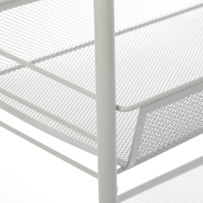 Металлическая этажерка «Ладья 2К» от российского производителя ЗМИ поможет поддерживать в доме порядок, сэкономит пространство и украсит любое помещение. Трехъярусный стеллаж с сетчатыми корзинами станет универсальным решением для грамотной организации хранения, позволит компактно разместить домашние вещи. Каркас и корзины органайзера сделаны из прочного металла, окрашены порошковой краской, которая создает на поверхности полимерный слой и защищает сталь от коррозии. Узкая этажерка легко помещается даже в небольшом малогабаритном пространстве ванной комнаты или туалета, коридора или прихожей, зала или гостиной, детской комнаты или спальни, гардеробной или балкона, бани или гаража. Каждый ярус выдерживает вес до 10 кг. На ножках предусмотрены колесики.