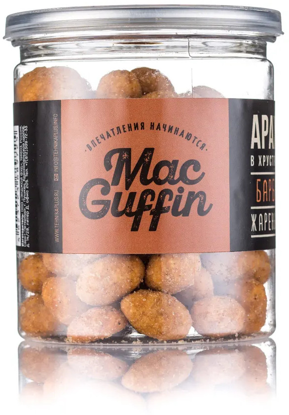 У бренда MacGuffin широкий ассортимент продукции. Попкорн, мармелад, арахис в хрустящей оболочке, продукция в шоколаде. |
