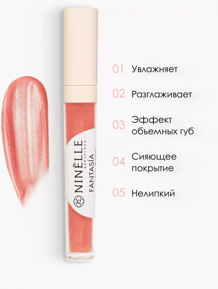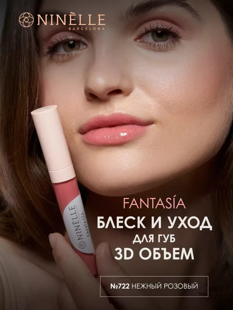 Ninelle Блеск и уход для губ 3D объем «Fantasia», тон 722 Нежный розовый