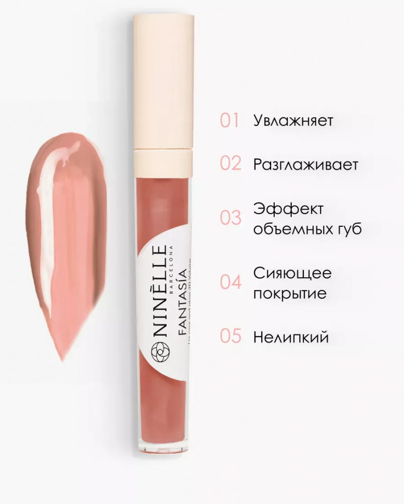 Ninelle Блеск и уход для губ 3D объем «Fantasia», тон 723 Какао