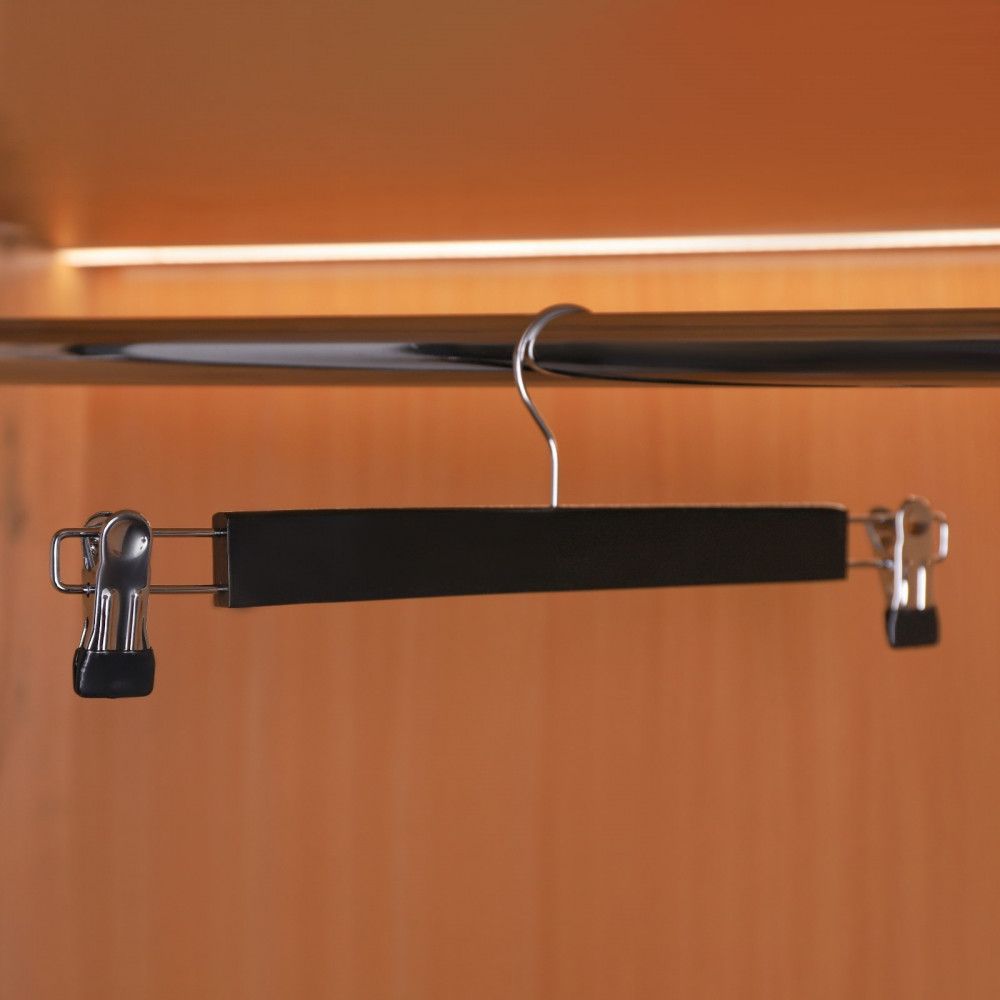 Отличная вешалка для брюк/юбок , изготовлена из качественных материалов, защиты на кончике из мягкого пластика(не цепляет), держит форму отлично !