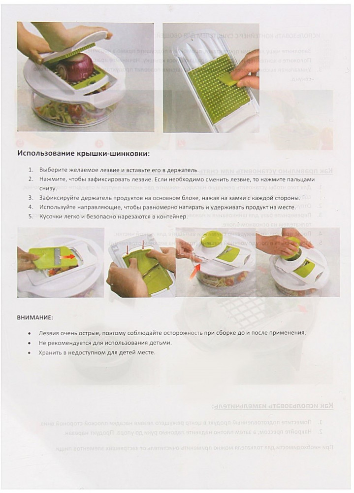 💳 Оплатить за товар можно при получении 🇰🇿 Есть бесплатная доставка по Казахстану от 1 дня 🎁 Копите бонусы с каждой покупки Овощерезка Доляна «Салат Шеф» — это удобное и компактное ручное устройство, которое позволяет быстро и легко нарезать овощи. Складная конструкция делает её простой в использовании и хранении. Салат Шеф — ваш идеальный помощник на кухне! Благодаря нержавеющей стали рабочая поверхность остается остротой долгое время, обеспечивая точные и ровные ломтики овощей. |