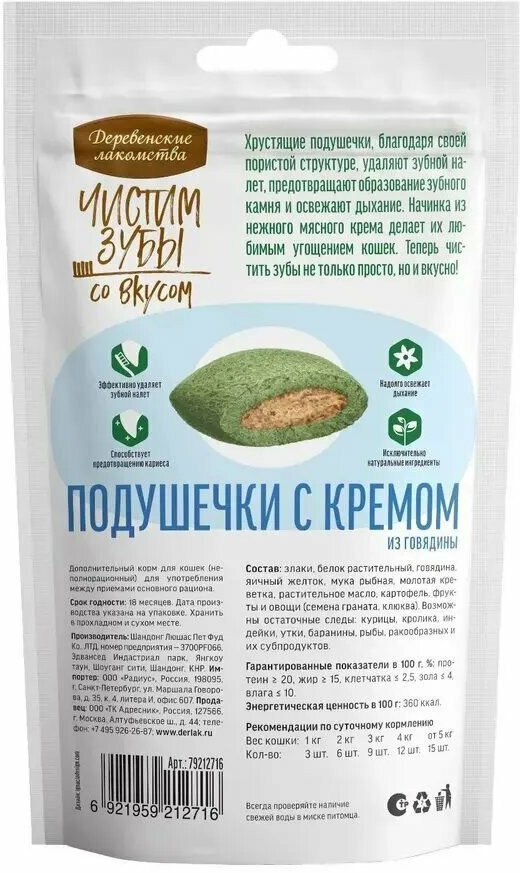 Деревенские лакомства Лакомство для кошек «Подушечки с кремом из говядины»