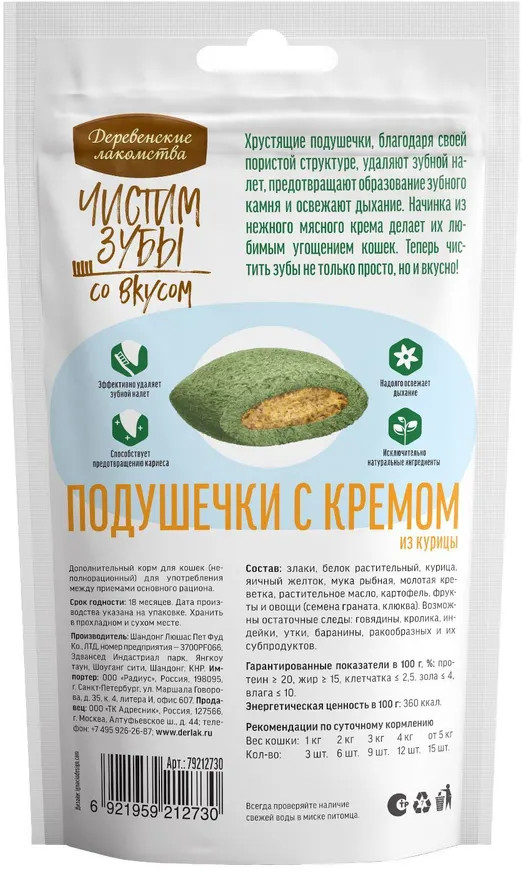 Деревенские лакомства Лакомство для кошек «Подушечки с кремом из курицы»