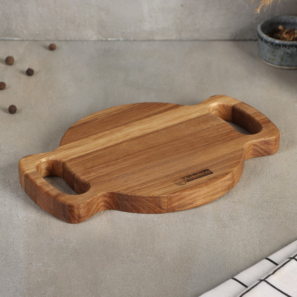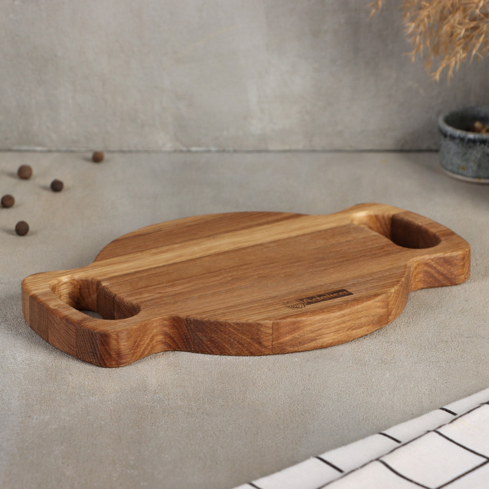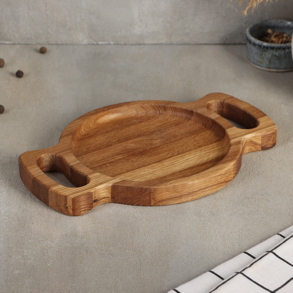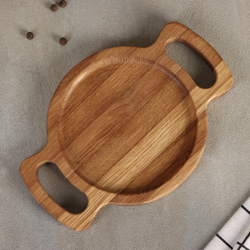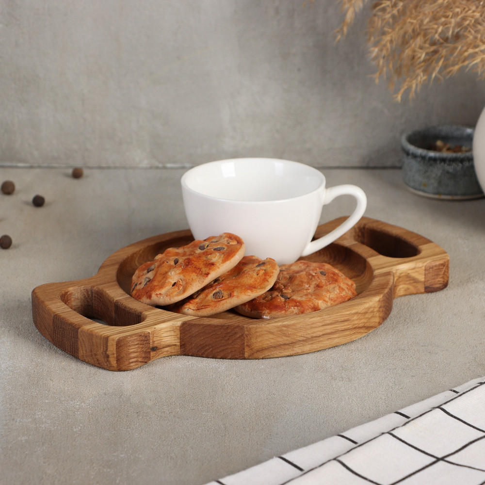 Деревянный поднос для сервировки подчеркнёт все достоинства вашего кулинарного шедевра и создаст атмосферу домашнего тепла. Подойдёт для подачи сырных и мясных нарезок, лёгких закусок, фруктовых канапе. Превратите обычный ужин в свидание в ресторане!