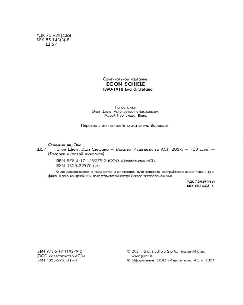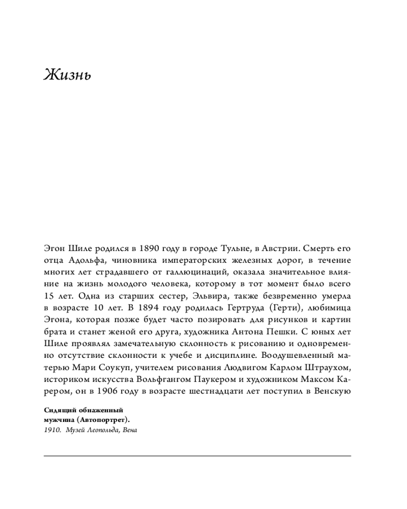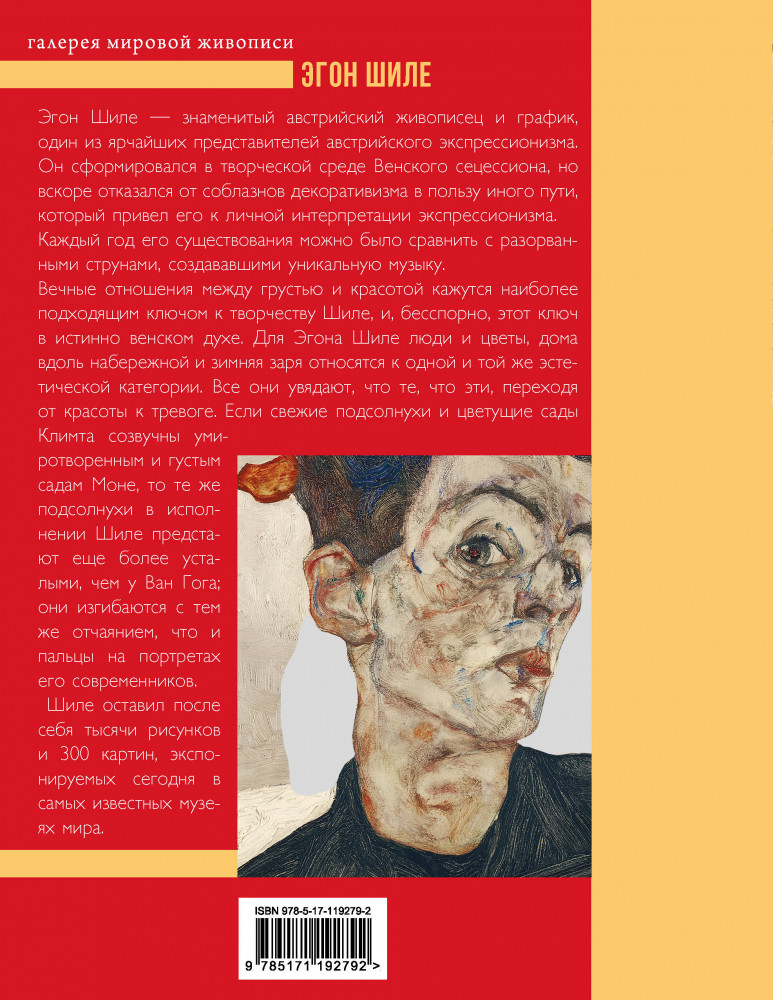 В данный момент этот товар отсутствует в продаже. Возможно, у нас найдется аналогичный или похожий товар здесь. Серия: Галерея мировой живописи Эгон Шиле — знаменитый австрийский живописец и график, один из ярчайших представителей австрийского экспрессионизма. Он сформировался в творческой среде Венского сецессиона, но вскоре отказался от соблазнов декоративизма в пользу иного пути, который привел его к личной интерпретации экспрессионизма. Каждый год его существования можно было сравнить с разорванными струнами, создававшими уникальную музыку.