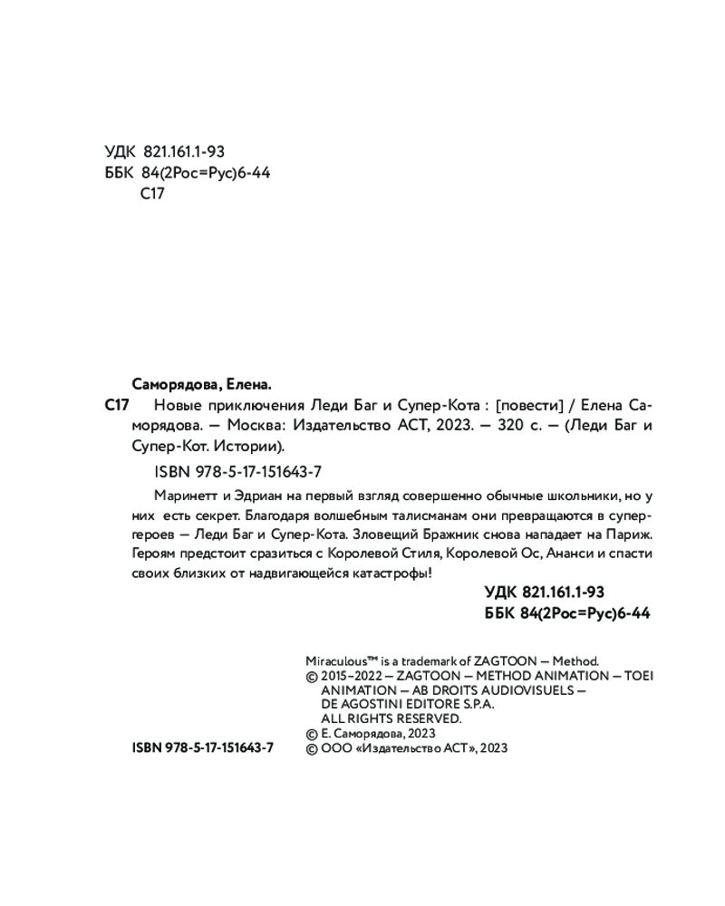 💳 Оплатить за товар можно при получении 🇰🇿 Есть бесплатная доставка по Казахстану от 1 дня 🎁 Копите бонусы с каждой покупки Серия: Леди Баг и Супер-Кот. Истории Маринетт и Эдриан на первый взгляд совершенно обычные школьники, но у них есть секрет. Благодаря волшебным талисманам они превращаются в супергероев — Леди Баг и Супер-Кота. Зловещий Бражник снова нападает на Париж. Героям предстоит сразиться с Королевой Стиля, Королевой Ос, Ананси и спасти своих близких от надвигающейся катастрофы! |