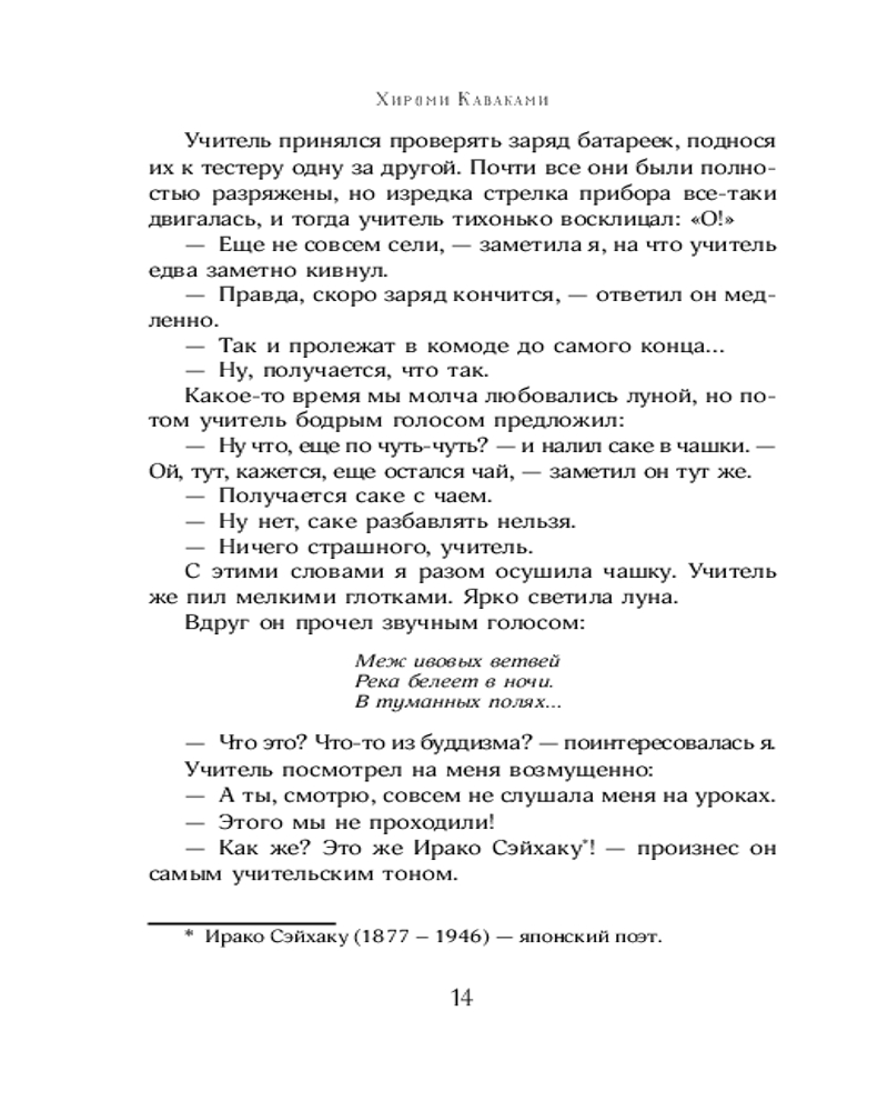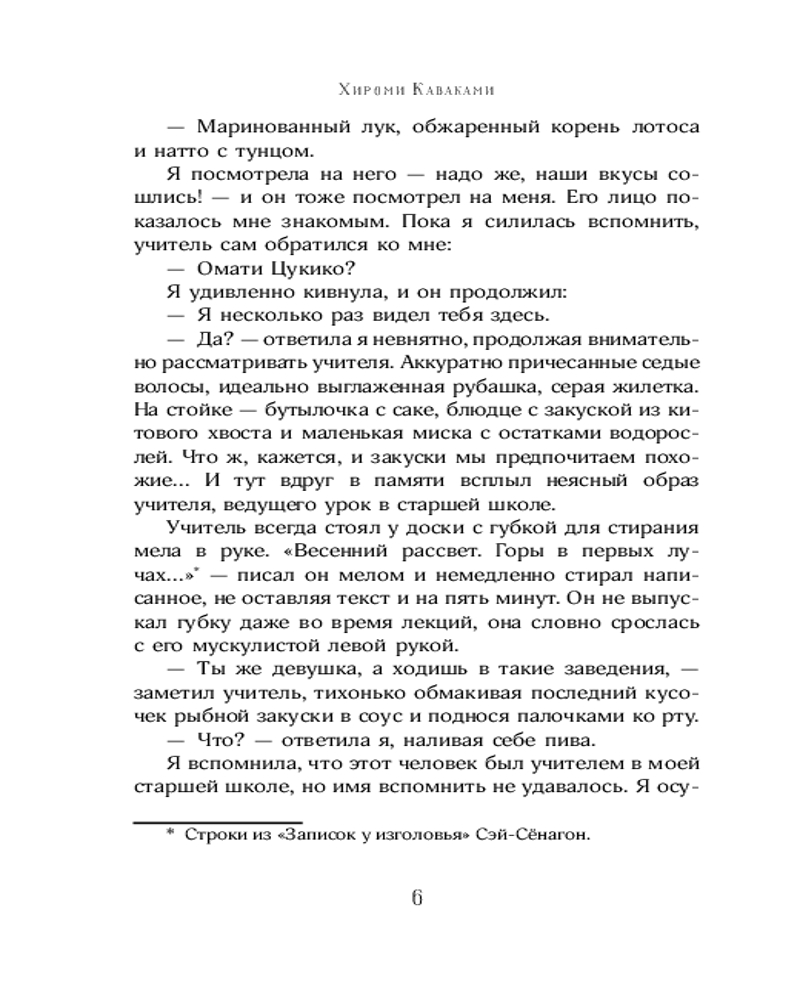 💳 Оплатить за товар можно при получении 🇰🇿 Есть бесплатная доставка по Казахстану от 1 дня 🎁 Копите бонусы с каждой покупки Серия: Погода в Токио Цукико ведет уединенный образ жизни. По ее мнению, она не создана для любви и привыкла коротать одинокие вечера в баре, где однажды случайно встречает своего школьного учителя. Он тоже живет один в слегка заброшенной квартире, где собирает странные предметы. Учитель и Цукико заключают между собой негласный договор о разделении одиночества. Они выбирают одну и ту же еду, ищут общества друг друга, и им трудно расстаться, хотя иногда они пытаются убежать: учитель — в воспоминания о бросившей его жене; Цукико — о бывшем однокласснике. По мере того, как Цукико и учитель сближаются, течение жизни отмечается нежными намеками на смену времен года: от согревающих до освежающих напитков, от распускания почек на деревьях до цветения сакуры... |