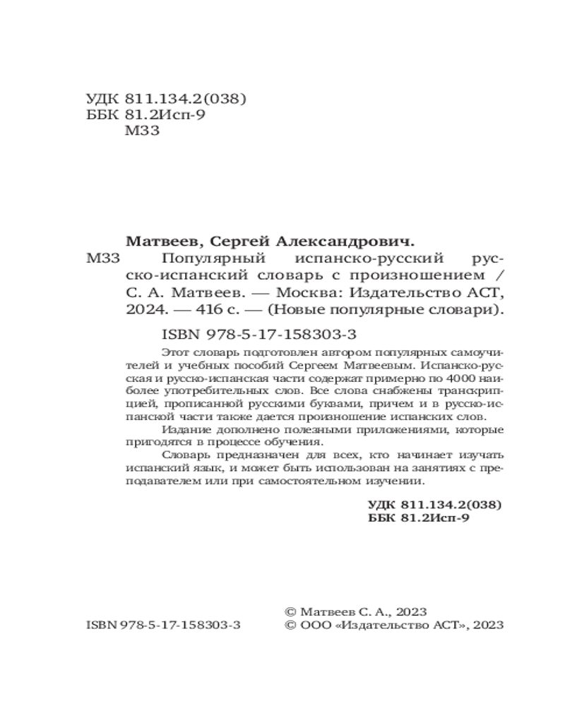 💳 Оплатить за товар можно при получении 🇰🇿 Есть бесплатная доставка по Казахстану от 1 дня 🎁 Копите бонусы с каждой покупки Серия: Новые популярные словари Этот словарь подготовлен автором популярных самоучителей и учебных пособий Сергеем Матвеевым. Испанско-русская и русско-испанская части содержат примерно по 4000 наиболее употребительных слов. Все слова снабжены транскрипцией, прописанной русскими буквами, причем и в русско-испанской части также дается произношение испанских слов. Издание дополнено полезными приложениями, которые пригодятся в процессе обучения. Словарь предназначен для всех, кто начинает изучать испанский язык, и может быть использован на занятиях с преподавателем или при самостоятельном изучении. |
