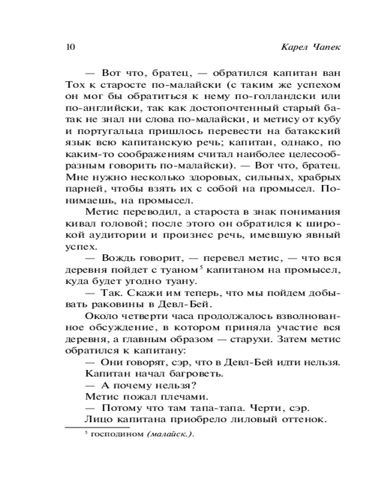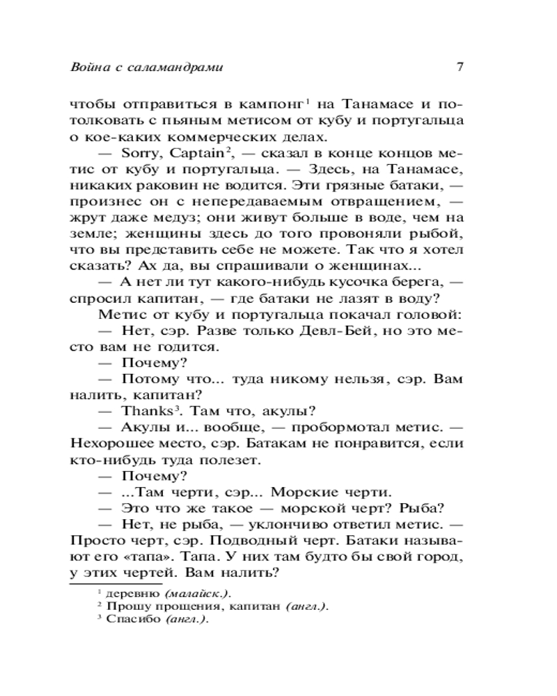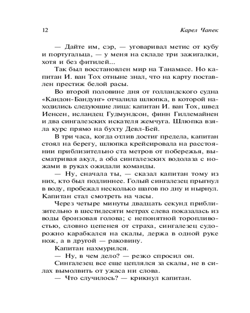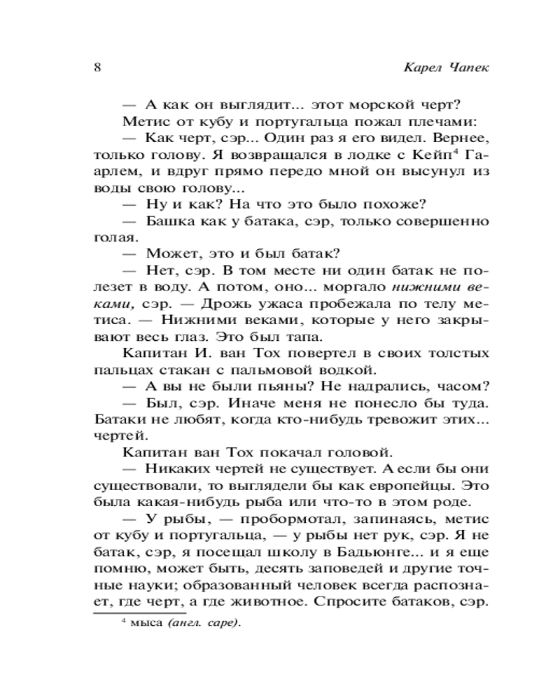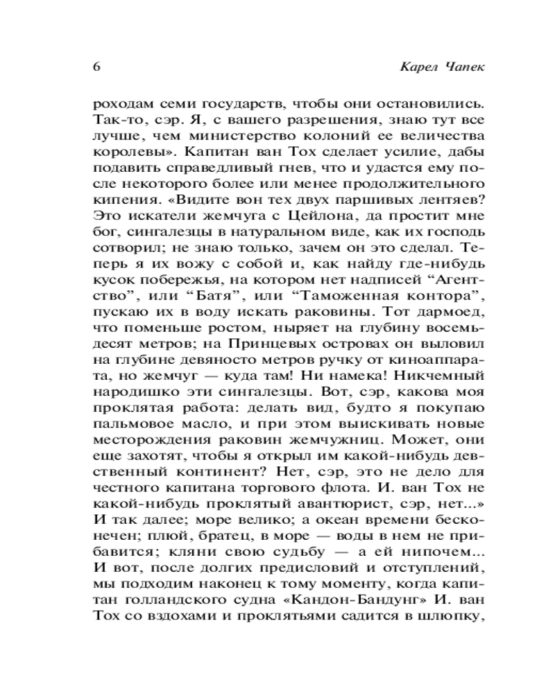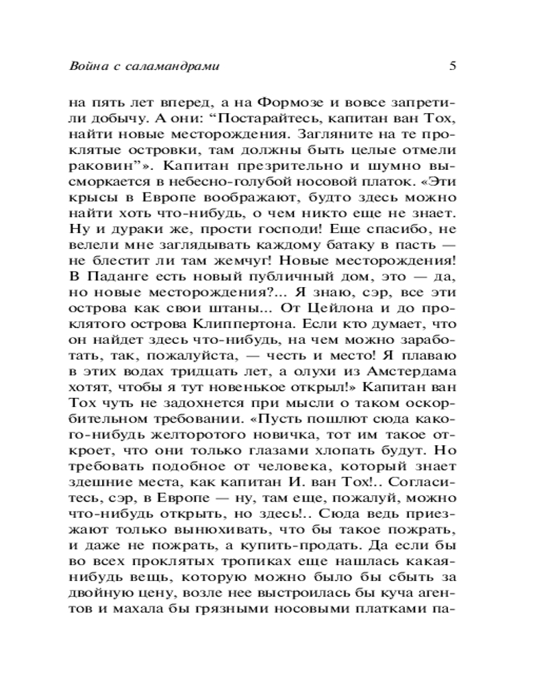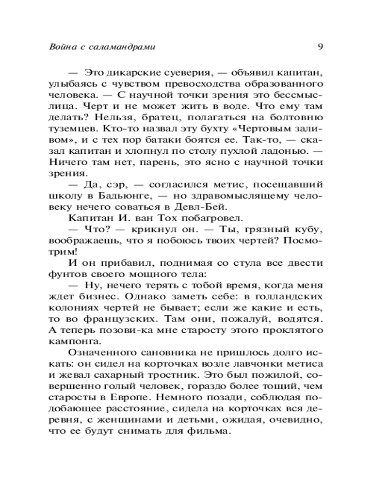 💳 Оплатить за товар можно при получении 🇰🇿 Есть бесплатная доставка по Казахстану от 1 дня 🎁 Копите бонусы с каждой покупки Серия: Эксклюзивная классика Ловцы жемчуга находят на одном из островов в Тихом океане огромных саламандр. Быстро выясняется, что земноводные способны говорить на разных языках, читать и рассуждать. Вскоре промышленники и магнаты начинают использовать доверчивых и трудолюбивых существ на строительных работах по всему Мировому океану. Численность саламандр быстро растет, и они формируют собственное высокоразвитое общество. Постепенно земноводные начинают уставать от жестокой эксплуатации и задаются вопросом: а так ли им нужны люди? Саламандры по всему миру объединяют усилия и объявляют человечеству войну на уничтожение. |