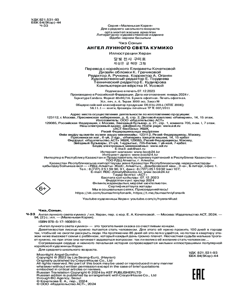 💳 Оплатить за товар можно при получении 🇰🇿 Есть бесплатная доставка по Казахстану от 1 дня 🎁 Копите бонусы с каждой покупки Серия: Маленькая Корея «Ангел лунного света кумихо» — это трогательная сказка со счастливым концом. |