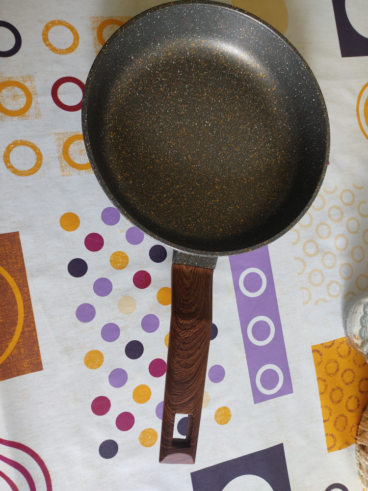Сковорода очень понравилась,тяжеленькая и добротная. Покрытие прочное. Читала отзывы на других торговых площадках- очень положительные. Ошиблась с размером,перезакажу.