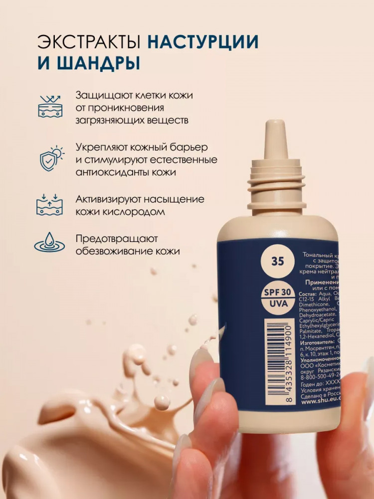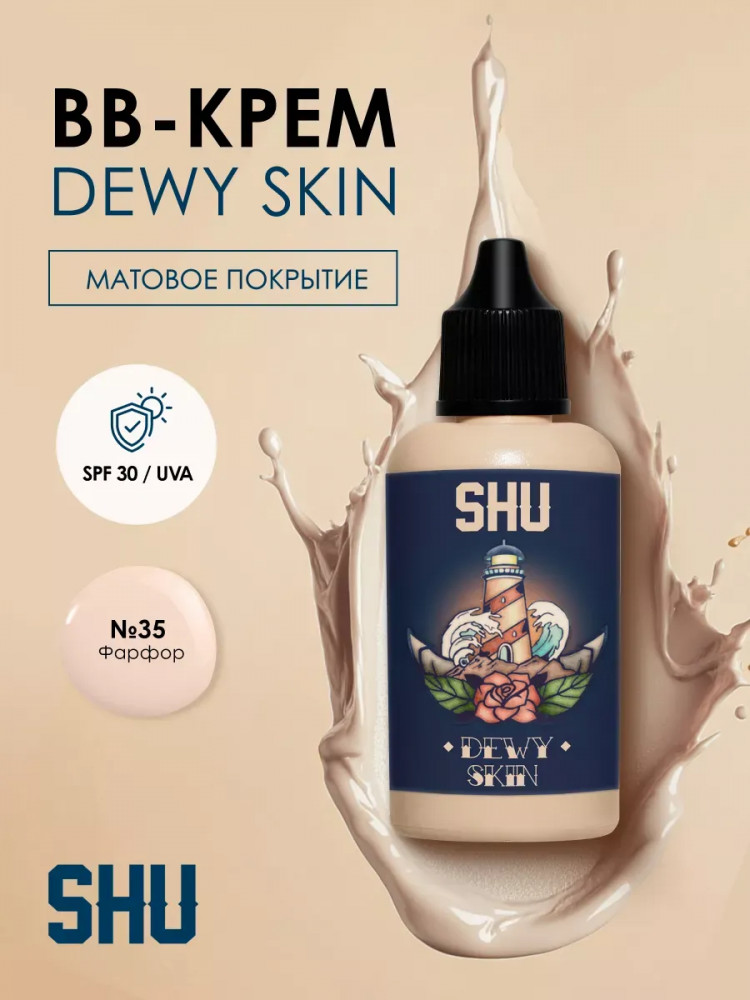 SHU ВВ крем для лица SPF 30 «Dewy Skin», тон 35 фарфоровый