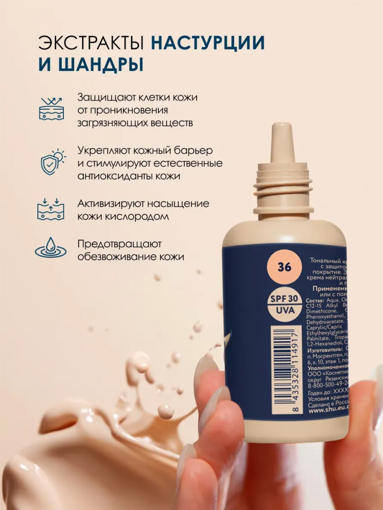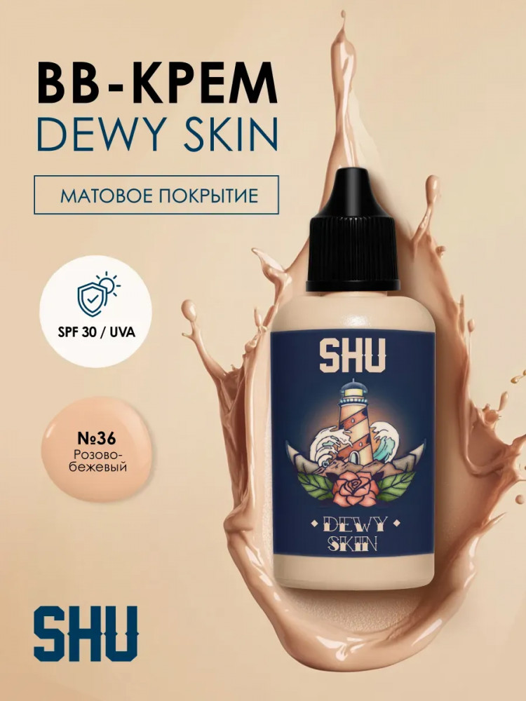SHU ВВ крем для лица SPF30 «Dewy Skin», тон 36 розово-бежевый